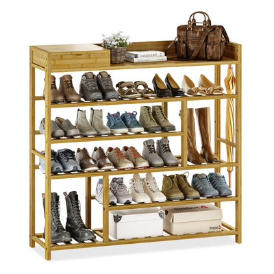 Bamworld Shoes Rack Shelf Organizer Entryway 5 Tier Bamboo for 24 Pair Boots Footwear Book Flowerpots with Storage Box