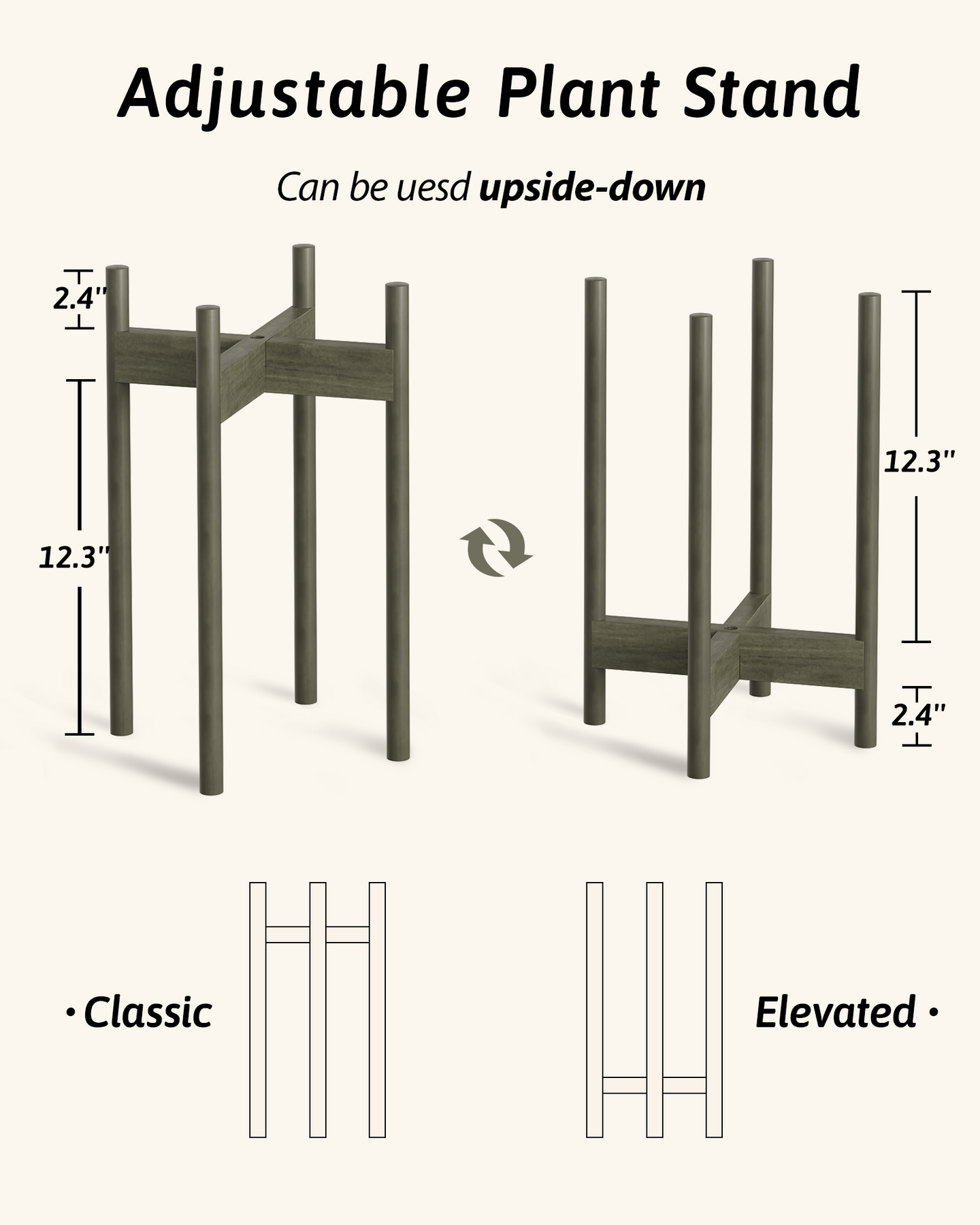 - Adjustable Sizing: The four brackets are width-adjustable to fit 8-12 inch pots and can be flipped to accommodate different pot heights.