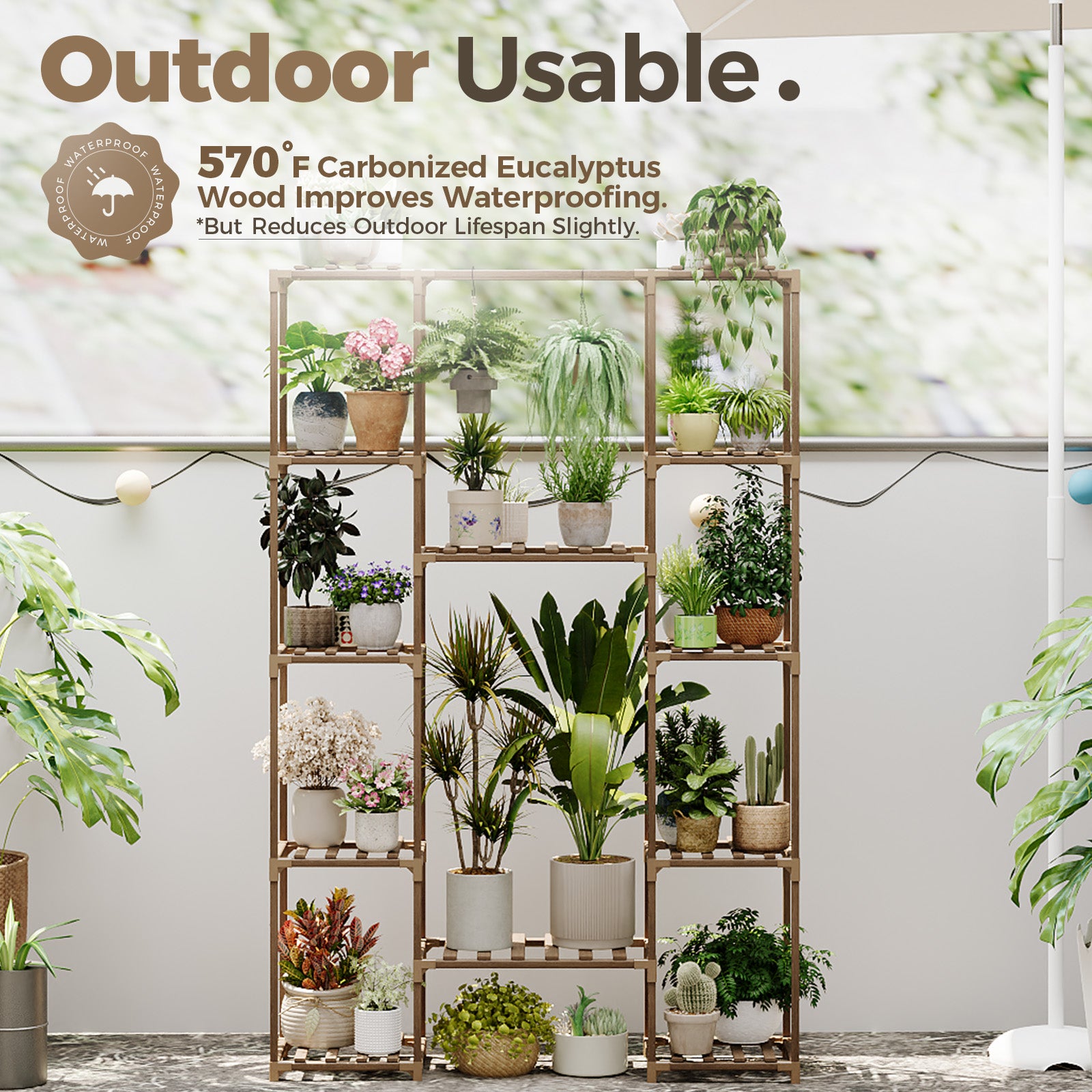 Bamworld Wood Plant Stand Indoor Outdoor, 62.2" Tall Flower Shelf Tiered Plant Stands for Multiple Plants Large Planter Holder Hanging Shelves Rack for Living Room Garden Balcony